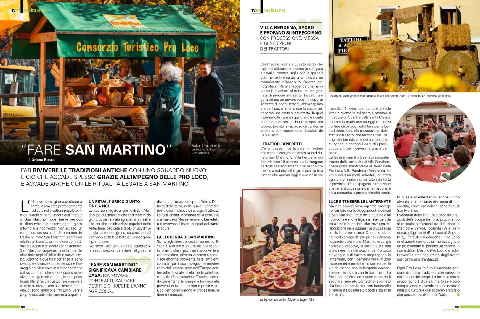 In questa uscita tocca alla tradizione del giorno di San Martino della Pro Loco di Villa Rendena, legata alla fine dell’anno agricolo, con la benedizione dei trattori e la processione con la statua del santo.